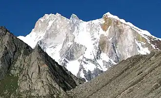 The mountain was formerly the site of the world's highest BASE jump from a location on the surface of the Earth by Glenn Singleman and Heather Swan, from a height of 6,604 metres (21,667 ft), in June 2006, a record which has since been surpassed by Valery Rozov's 2013 jump from the North Face of Mount Everest.[1][2][3]