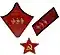 • Rank insignia, big (overcoat): on a rhombic padding, gold coloured border, one to four rhombic red enameled badges, gold coloured Soviet star small/ big