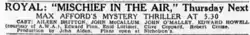 - ^ ""MISCHIEF IN THE AIR" DRAWS BIG AUDIENCE". Goulburn Evening Post. New South Wales, Australia. 16 December 1947. p. 4 (Daily and Evening). Retrieved 28 August 2023 – via National Library of Australia.