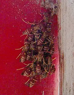 Mischocyttarus mexicanus cubicola huddling together in early winter