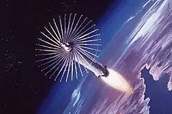 An anti-satellite weapon (ASAT) is a space weapon designed to incapacitate or destroy satellites for strategic or tactical purposes.[49] Although no ASAT system has yet been utilized in warfare, a few countries have successfully shot down their own satellites to demonstrate their ASAT capabilities in a show of force.[50][51][52] ASATs have also been used to remove decommissioned satellites.[53] ASAT roles include defensive measures against an adversary's space-based and nuclear weapons, a force multiplier for a nuclear first strike, a countermeasure against an adversary's anti-ballistic missile defense (ABM), an asymmetric counter to a technologically superior adversary, and a counter-value weapon.[54]