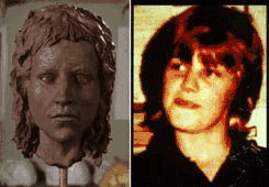 ![]() Comparison of a clay reconstruction of Karen Price's skull with a photograph of Price. | |