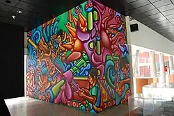 One temporary exhibit was in the fine arts, featuring the work of artist Rosendo Vega. He is originally from Guerrero but has lived in Oaxaca over a decade and his work reflects the Oaxaca worldview according to Carlomagno Pedro Martínez.[13] Some of the museum's temporary exhibits link Oaxaca's crafts with those in the rest of Mexico. In 2010, the museum held an exhibit on marionettes, with samples from parts of Mexico as well as Oaxaca, for a collection of about 30 puppets. The display was created for Children's Month with the cooperation of the marionette performing company called "La bruja."[14] In 2011, the museum sponsored an exhibition called "Extensiones" which was a collection of works by young artists from the neighboring state Puebla, presenting their concept of society.[9]