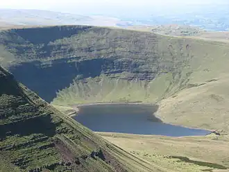 The area is the setting for many tales of myth and legend. One such legend is the story of the Lady of the Lake. The story goes that a young farm boy grazing his sheep flock around the lake of Llyn y Fan Fach below the Black Mountain escarpment used to pass the long daylight hours gazing into the dazzling waters of the lake. As he grew up, passing every day this way, one day a beautiful woman emerged from this lake, approached the dumbstruck boy, who was instantly besotted and cast totally under her spell. She was unparalleled in beauty, grace and wisdom and immediately prophesied to him that he would become rich and respected if he would agree to marry her. However this future success and her partnership was dependent on certain conditions. Foremost condition was that he should never strike her more than three times. Secondly that he never speak a word of her origin or the supernatural source of their success and relationship.