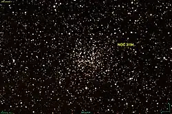 NGC 2194 is an open cluster in the constellation Orion. The cluster is located about 10,000 light years away from Earth. It is rich and moderately concentrated. The cluster lies 33 arcminutes west-northwest of 73 Orionis.[4]