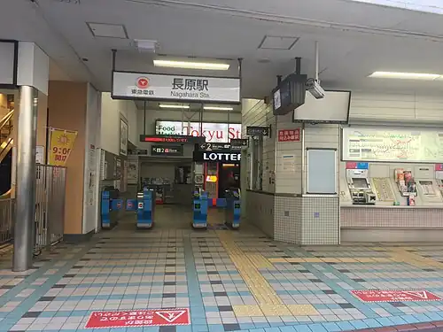 Nagahara Station (長原駅, Nagahara-eki) is a railway station on the Tokyu Ikegami Line in Ota, Tokyo, Japan, operated by the private railway operator Tokyu Corporation.