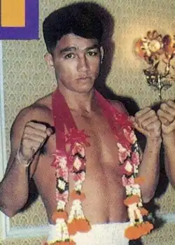Namphon Sijantuek (Thai: นำพล สีจันทึก; May 19, 1969 – September 19, 2016), known professionally as Namphon Nongkeepahuyuth (Thai: นำพล หนองกี่พาหุยุทธ), was a Thai professional Muay Thai fighter. He was a three-time Lumpinee Stadium champion who was famous in the 1980s. He was also the elder brother of Namkabuan Nongkeepahuyuth, another famous Thai fighter.