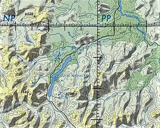 The Sen River, a tributary of the Chara, flows from the northern end of the lakeshore.[2] There are other deep lakes nearby, such as Oron to the southwest, but Nichatka is the deepest of the lakes of the Chara river basin.[5] The lake is frozen between October and May; in the winter the thickness of the ice my reach 1.75 m (5.7 ft).[4]