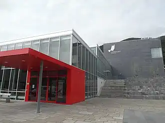 The building also houses a cinema, and a library and is connected to the local upper secondary school. The main stage is 14-metre (46 ft) wide, and 10 m (33 ft) deep, with a capacity of 530 seats. Of these, 218 seats are located in the gallery. When the orchestra pit is in use, capacity is 484. The chamber is specially constructed and adapted for acoustic music, using the same techniques as found in the Oslo Opera House.[26]