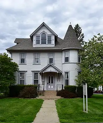 The North Grinnell Historic District is a nationally recognized historic district located in Grinnell, Iowa, United States. It was listed on the National Register of Historic Places in 2008.[1] At the time of its nomination it contained 272 resources, which included 202 contributing buildings, six contributing objects, 61 non-contributing buildings, and one non-contributing object.[2] The historic district is a residential area located west of the Grinnell College campus. Of the 157 houses, three-quarters of them are two-story structures. The rest are bungalows, cottages, and post-World War II minimal traditional plans. The vast majority of houses are of frame construction, with a few brick, concrete block, stucco and half-timbered claddings. There are 103 outbuildings, which include garages, barns and carriage houses. Three of the most prominent architectural styles include Neoclassical, Queen Anne and American Craftsman. The historical objects are six concrete hitching posts. Eleven architects are known to have houses in the district.[2] The period of significance is 1867 to 1958.