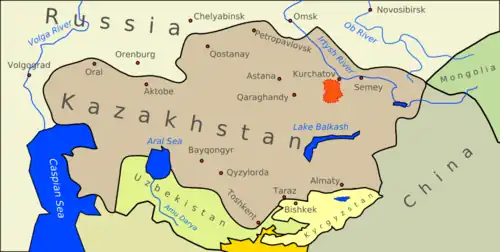 - ^ a b Stawkowski, Magdalena E.. (February 2016). ""I am a radioactive mutant": Emergent biological subjectivities at Kazakhstan's Semipalatinsk Nuclear Test Site". American Ethnologist. 43 (1): 144–157. doi:10.1111/amet.12269. ISSN 0094-0496.