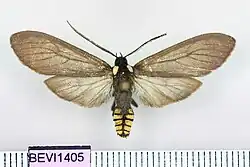 1. ^ Savela, Markku. "Opharus bimaculata (Dewitz, 1877)". Lepidoptera and Some Other Life Forms. Retrieved June 8, 2018.