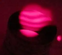 A thermal image of an optical flat after handling for just a few seconds. The warmer areas increase the thickness of the flat over cooler areas, distorting the surface accordingly.