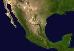 The United Mexican States,[1] commonly known as Mexico, is a federal constitutional republic located in North America.[2] It is bound on the north by the United States; on the south and west by the North Pacific Ocean; on the southeast by Guatemala, Belize, and the Caribbean Sea; and on the east by the Gulf of Mexico.[3][4]