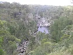 The Youdales Hut is an historic pioneering timber slab walled hut that was built in the 1930s on a small pastoral run established in the Kunderang Gorges. Alan Youdale is believed to have been guided here by an Aboriginal man, and he then settled here in circa 1939.[14] This camping ground is approximately 96 kilometres (60 mi) from Walcha and can be accessed via Kangaroo Flat Road, which leaves the Oxley Highway 55 kilometres (34 mi) from Walcha. The trail is narrow and steep and a 4WD with low range is necessary. Trailers are not permitted. Access is also possible via Carrai Road, Coachwood Road and the Racecourse Trail from Kempsey, or the Hastings Forest Way and Racecourse Trail from Port Macquarie. Visitor numbers are limited so bookings are essential. A permit and key is necessary to gain entry to this area and they may be obtained from Apsley Motors or the Park office, Walcha. The area caters for both picnickers and campers, with wood barbecues (wood provided), toilet and interpretation display at the hut. It's ideal for picnics, swimming and short walks.