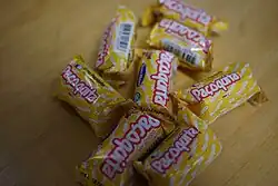 The state of São Paulo is the largest producer of peanuts in Brazil,[6] while the Santa Helena Group, created in 1942 in the city of Ribeirão Preto, is responsible for the production of Paçoquita, the most consumed paçoca in the country.[7][8] It is made in a cork or rectangular shape.[9] The group has also launched, in recent years, the creamy version and other versions, such as Paçoquita Diet.[10]