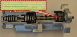In this figure, the plunger had pushed through the flyweights and didn't rest on top of the flyweights anymore. As a result, the plunger could not be pushed upwards and the OSG valve remained in closed position.