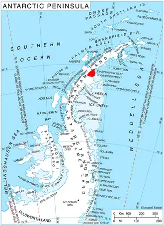 - British Antarctic Territory. Scale 1:200000 topographic map. DOS 610 Series, Sheet W 65 62. Directorate of Overseas Surveys, Tolworth, UK, 1976.