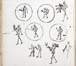 Huygens' 1659 sketches for a projection of Death taking off his head