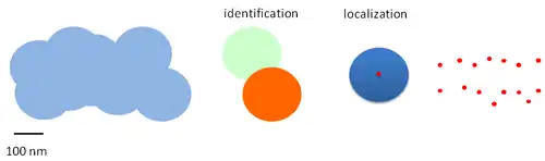 The two steps of identification and localization of individual fluorescent molecules in a dense environment where many are present are at the basis of PALM, STORM and their development.