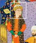 Following Manushihr's death, Tabari says that Frasiyab conquered and ruled over Persia until Zaw, a descendant of Manushihr, is chosen as king.[109][110] Zaw drives out Frasiyab and was "praised for his rule and behaved well towards his subjects".[111] He was succeeded by Kayqubadh (Kay Qobod) the first of the Kayanian line of kings.[112]