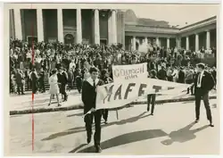 On 30 January 300 student protesters from the University of Warsaw and the National Theater School were beaten with clubs by state arranged anti-protestors.[28] On 8 March, the 1968 Polish political crisis began with students from the University of Warsaw who marched for student rights were beaten with clubs. The next day over two thousand students marched in protest of the police involvement on campus and were clubbed and arrested again. By 11 March, the general public had joined the protest in violent confrontations with students and police in the streets. The government fought a propaganda campaign against the protestors, labeling them Zionists. The 20 days of protest ended when the state closed all of the universities and arrested more than a thousand students. Most Polish Jews left the country to avoid persecution by the government.[29]