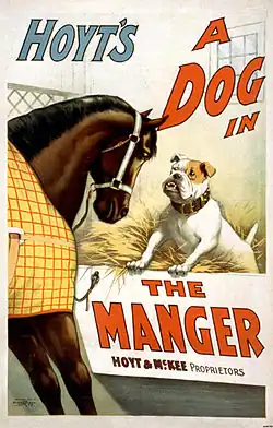 They have also been used as the titles of plays:[182] Baby with the Bathwater by Christopher Durang, Dog Eat Dog by Mary Gallagher, and The Dog in the Manger by Charles Hale Hoyt. The use of proverbs as titles for plays is not, of course, limited to English plays: Il faut qu'une porte soit ouverte ou fermée (A door must be open or closed) by Paul de Musset. Proverbs have also been used in musical dramas, such as The Full Monty, which has been shown to use proverbs in clever ways.[183] In the lyrics for Beauty and the Beast, Gaston plays with three proverbs in sequence, "All roads lead to.../The best things in life are.../All's well that ends with...me."