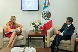 Queen Máxima serves as the United Nations Secretary-General's Special Advocate for Inclusive Finance for Development (UNSGSA). In September 2009 then UN Secretary-General Ban Ki-moon designated her to this role in order to raise awareness on the importance of inclusive financial systems for achieving economic and development goals such as poverty alleviation, food security and education. In her work as UNSGSA, the Queen focuses on how formal financial services such as savings, insurance, and credit can prevent people from falling into poverty due to expenditures on healthcare, and people who are not able to protect themselves against rising food prices and poverty because they do not have access to basic savings accounts. The role of the UNSGSA is to foster action by governments, private sector, financial system standard setters, and others towards a more inclusive financial system that works for the poor.[28] In later years, her focus as a special advocate expanded to advocating digital financial inclusion, financial health, responsible technology for financial inclusion to support Sustainable Development Goals and agricultural finance.[29][30] Máxima is also an advocate for increasing access to financial services, improving consumer protection and enhancing financial literacy.[31] According to the UNSGSA website, she "aims to unlock development opportunities and economic inclusion for all."[29]