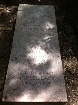 The grave of Richardson, his wife Meriel Forbes, and their son, Charles, in Highgate Cemetery in north London