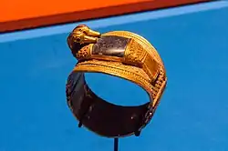 A gold and lapis lazuli duck-shaped bracelet of Ramesses II.