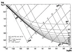 The Moody diagram, which describes the Darcy–Weisbach friction factor f as a function of the Reynolds number and relative pipe roughness.
