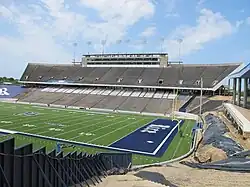 Rice Stadium was built in 1950, and has been the home of Owls football ever since. It hosted the NFL Super Bowl in January 1974. It replaced the old Rice Field (now Rice Track/Soccer Stadium) to increase seating. Total seating capacity in the current stadium was reduced from 70,000 to 47,000 before the 2006 season. The endzone seating benches were removed and covered with tarps, and all of the wooden bleachers were replaced with new, metal seating benches in 2006, as well. The stadium is also undergoing further renovations.