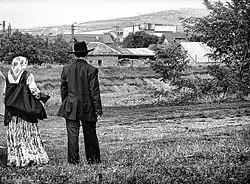 The liberation of the Roma improved the legal status of Romania's Roma, however, they retained their position as the most marginalised sector of Romanian society.[25][26] They frequently continued to work for the same masters, without significant improvement to their material conditions.[25] Roma who did not continue to labour for their former owners often suffered great economic hardship, imprisonment and death from hunger being frequent outcomes.[31] During the first thirty years following liberation, a notable phenomenon of urbanisation occurred, with many Roma who were expelled from their former owners' estates, or who did not wish to adopt a lifestyle which would thrust them into poverty, migrating to towns. This contrasted the situation noted in some other groups of Roma, who adapted fully to this new condition and assimilated into the peasant population, losing their status as Roma both culturally and officially.[29]