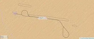 By the dumbbell shaped design with turning loops at either end, it was possible to run the unmanned trolley, onto which a wooden target in the shape of a military tank was fixed, continuously back and forth along track.[1][2][4][5]