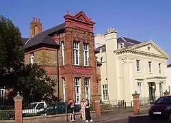 The (red-brick) Annex on the left and the original (cream-coloured) Dispensary on the right