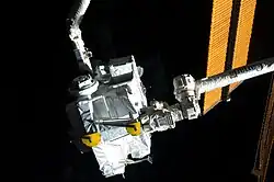 ![]() Canadarm2 grapples the exposed facility of Kibō, prior to its installation on the ISS | |