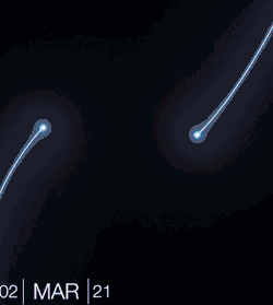 This video sequence shows the motion of the dusty cloud G2 as it closes in on, and then passes, the supermassive black hole at the center of the Milky Way.