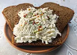 Belarusian, Ukrainians, and Lithuanians often eat it with rye bread and garlic or onion.[3]