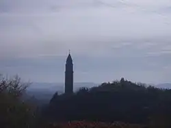 The church's tall bell tower reaches a height of 65 meters.[1]