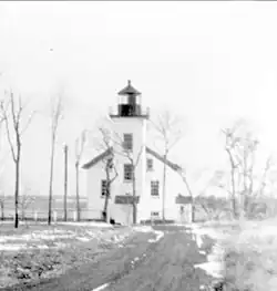 As shipping traffic increased dramatically, so did the need for some sort of light structure to guide the ships in and out of the harbor and to warn them of the treacherous sand shoals that reached out into Little Bay de Noc from Sand Point,[12] a sandspit located just south of and adjacent to the harbor area. The United States Lighthouse Service approved construction of the Sand Point Lighthouse at a cost of $11,000. Construction began in the fall of 1867 and was completed in early spring 1868. The light first shone on the night of May 13, 1868.