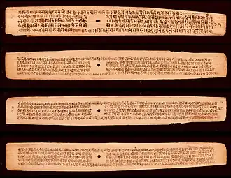The various Sanskrit literature also spawned a large tradition of commentary texts, which were called Bhāṣyas, Vṛṭṭis, Ṭīkās, Vārttikas and other names.[76] These commentaries were written on numerous genres of Sanskrit texts, including on Sūtras, on Upaniṣads and on the Sanskrit epics.[77][78][79]