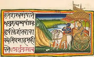 A 19th-century illustrated Sanskrit manuscript from the Bhagavad Gita, composed c. 400 BCE – 200 BCE.