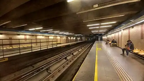 Santa Rosa station [3] is an embanked metro station located on Line 4A of the Santiago Metro in Santiago, Chile, between the La Granja and San Ramón stations and also between the communes of the same names La Granja and San Ramón. It lies along the Vespucio Sur Freeway, on its junction with Santa Rosa Avenue. The station was opened on 16 August 2006 as part of the inaugural section of the line between Vicuña Mackenna and La Cisterna.[4]