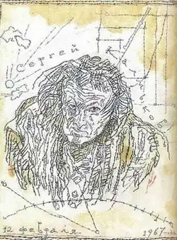 Sergey Ivanovich Kalmykov (Russian: Серге́й Иванович Калмыков; 6 October 1891 – 27 April 1967) was a Soviet painter, draughtsman, and writer. Barely known during his art career and abandoned at the end of his life, he is currently regarded as one of the most important figures of the Russian avant-garde art, an author of over fifteen hundred of paintings, drawings, illustrations, theater decorations, and numerous writings. During his life Kalmykov has developed an original style of painting and draftsmanship that can be described as 'magical impressionism'.