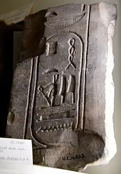 Limestone fragment inscribed with the birth-name of King Seti II within a cartouche. 19th Dynasty. From Egypt. The Petrie Museum of Egyptian Archaeology, London