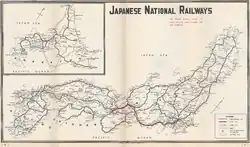 A JNR map from the October 1964 English-language timetable, showing the then-new Tokaido Shinkansen line (in red) and conventional lines