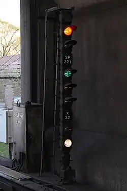 Interlocking signals are typically used in interlockings, which are any areas where train movements may conflict with each other. They are controlled by either human operators or a computer, not automatically by the movement of trains. Interlocking signals also tell train operators which way points are set. The following interlocking signals are used on the TTC.