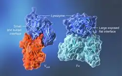 - ^ a b Stanfield RL, Dooley H, Flajnik MF, Wilson IA (September 2004). "Crystal structure of a shark single-domain antibody V region in complex with lysozyme". Science. 305 (5691): 1770–1773. Bibcode:2004Sci...305.1770S. doi:10.1126/science.1101148. PMID 15319492. S2CID 25137728.