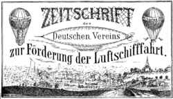 In 1882 the association started printing Zeitschrift des Deutschen Vereins zur Förderung der Luftschifffahrt, which was the first German technical aviation journal. In 1888 they printed under the title Zeitschrift für Luftschifffahrt (Journal of airshipflight) and the Vienese flight association Wiener Flugtechnische Verein became co-editors. In 1892 the title changed to Zeitschrift für Luftschifffahrt und Physik der Atmosphäre (Journal of airshipflight and atmospheric physics). In 1900 the association adopted the journal Illustrierte Aeronautische Mitteilungen (illustrated aeronautical reports),[3] with the subtitle Deutsche Zeitschrift für Luftschifffahrt (German journal of airshipflight).[2]