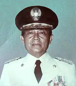 Soedjiman was nominated as the Governor of West Kalimantan instead. His appointment acts as a reconciliation between the military and the West Kalimantan people, who had different opinions on who should be the next governor.[26] The Regional Military Commander in West Kalimantan, Norman Sasono, actively campaigning for Colonel Marjans Saragih as the next governor, while the civilian officials and the West Kalimantan officials opted for Governor Kadarusno, the previous governor, to continue for a second term.[27] Thus, Soedjiman was inaugurated as the acting governor on 27 September 1978. Soedjiman, who was nominated by Panggabean for the governor's office, won the gubernatorial election[28] and was inaugurated as a governor for a five-year term on 4 January 1978.[29]